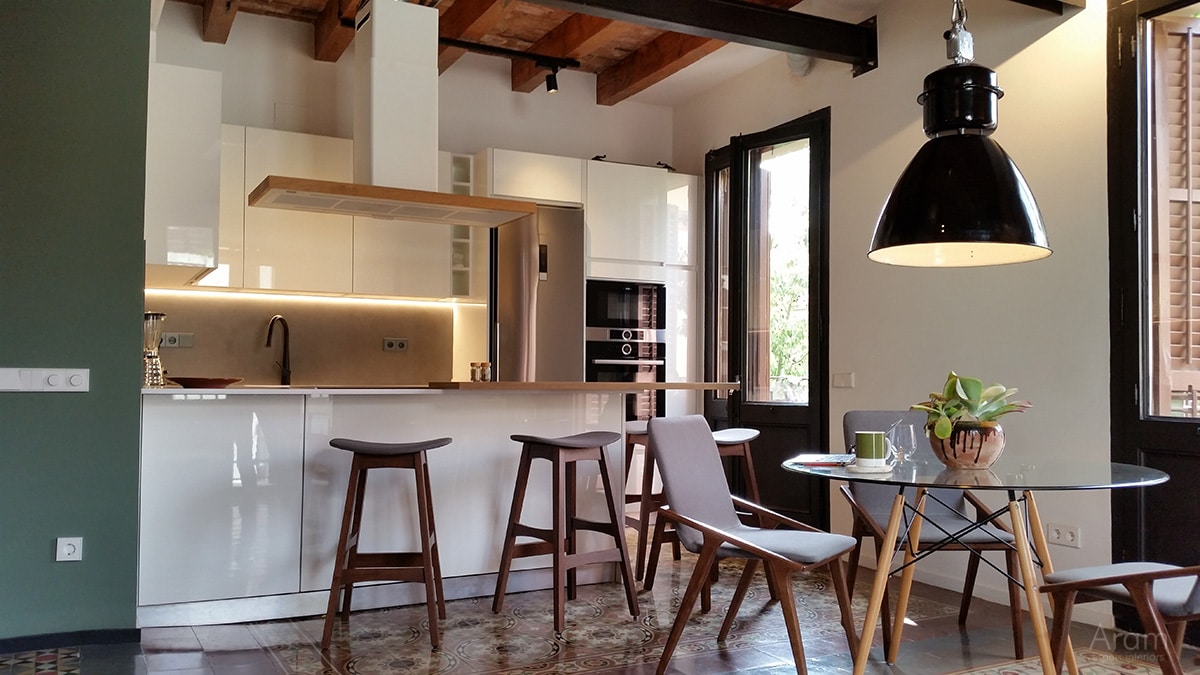 Dona un toc diferent a la zona de la illa oberta al menjador o col.loca uns mobles tipus office a on pots enmagatzermar ampolles de vi, vaxella, gots, copas, o qualsevol cosa que se't passi pel cap.